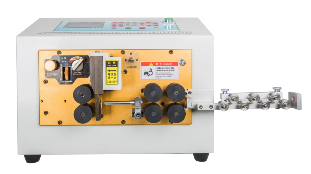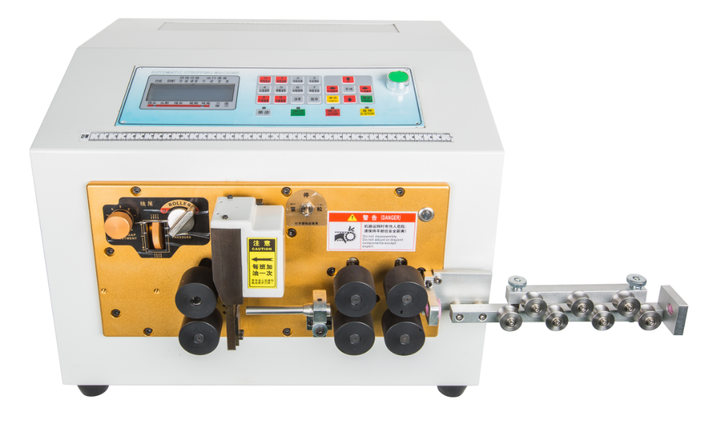 本设备加大型6轮同时驱动,力气大,剥线稳定,长度一致!全电脑控制,按键操作,高速剥线可任意设定剥线长度,剥头长度,或半剥长度,降低成本,经久耐用,老品牌功能稳定无需维护。适合裁剥25平方BVR多股软线和16平方BV硬线,同时了可配置做护套线用,根据需求配置。也可用于切割热缩套管、PVC软管等,带程序记忆功能,可存储99组程序,裁剥不同的线材时,只需调出相应的程序号即可,无需重复设置。支持全剥、半剥、中间剥等多种剥线方式,本机亦可只使用其切割功能,用于切割排线、热缩套管等。电脑剥线机采用高精度步进电机驱动,且可通过程序修正脉冲量,可以达到极高的裁线精度。